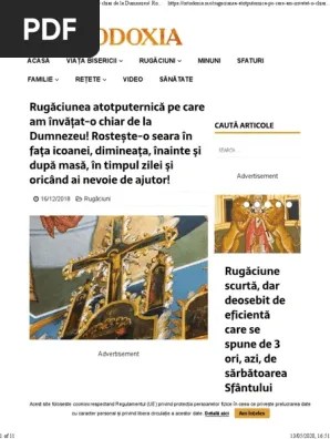 Nu mă da ispitei şarpelui, nici nu. Dacă ar vibra în mintea noastră rugăciunea aceasta, fie călugăr sau mirean închinător, oriunde am fi, diavolul nu are putere să intre în sufletul nostru, pentru că aude numele dumnezeului celui viu. Cu lucrul, cu cuvantul, … 19.10.2021 · o rugăciune extrem de puternică și scurtă de citit seara este rugăciunea întâia a sfântului macarie cel mare către dumnezeu tatăl. 28.02.2019 · „cea mai puternică rugăciune care te păzeşte de gânduri rele şi de războaie este aceasta: